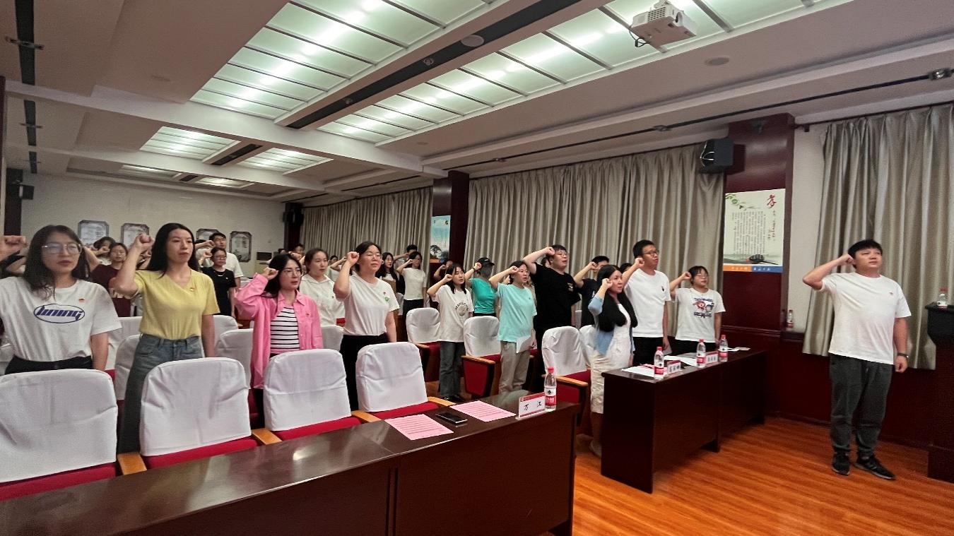 面对鲜红的党旗,在万江老师的领誓下,全体党员重温入党誓词。铿锵有力的誓言响彻北区师范楼,激起了党员们戮力同心、不懈拼搏的决心和斗志。