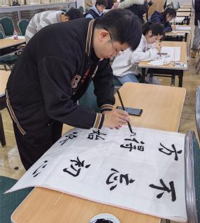 石河子大学教务处副处长李玲勉励参赛选手们“书法作为中国传统文化的突出标志,更是我们提升文化认同和文化自信的重要途径。以赛促学、以比鼓劲,希望大家都能在今天的比赛中收获进步、取得佳绩!”大赛分为硬笔、粉笔和毛笔三个项目,共吸引到来自各个学院的千余名学生踊跃参与,经过初赛的重重选拔,最终有百余名选手成功入围决赛。