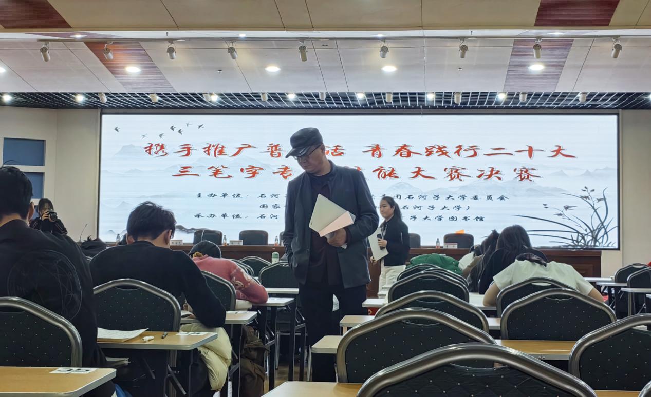笔下生花,墨润石大。为贯彻落实党的二十大精神,加大国家通用语言文字推广力度,激发师生对汉字书写的兴趣,提高师生规范使用汉字的意识和能力,传承弘扬中华优秀语言文化,推进文化自信自强。2023年11月5日,由石河子大学教务处、石河子大学团委、国家通用语言文字基地(石河子大学)联合主办,师范学院和图书馆承办的石河子大学“携手推广普通话 青春践行二十大”三笔字专业技能大赛决赛在石河子大学图书馆五楼报告厅圆满落幕,参加本次大赛的人数达到1200余人。