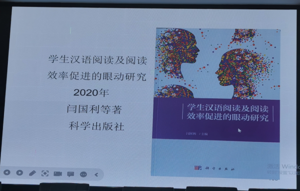 闫国利教授围绕眼动研究记录方法、学生汉语阅读的眼动研究及天津师范大学心理学部眼动团队介绍的三部分内容展开讲座。