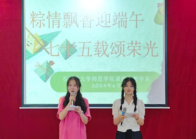 粽叶飘香,浓情意切。为弘扬中华传统文化,厚植爱国情怀,传承民族文化习俗,提高大学生的劳动生活技能和动手协作能力,以劳动切身感受节日韵味,体味美好生活,在端午节来临之际,师范学院课程与教学系组织师生于6月9日在北区学术交流中心开展了“粽情飘香迎端午,七十五载颂荣光”——端午节主题活动。师范学院党委书记刘政江老师、课程与教学系教师和小学教育专业学生共100余人参加了此次活动。