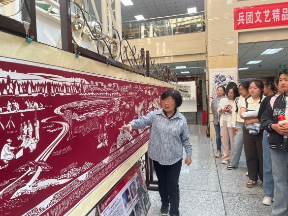 薛洁教授的讲解指导以“兵团军垦民间文艺优秀作品巡展” 为契机,达到了“以美育人”的效果。作品以兵团军垦为主题,涵盖民间文学、民间艺术、民俗文化等多种文艺形式,是民间艺术精品的汇聚。这些作品既呈现了多姿多彩的兵团文化,又展示了民间艺人的高超技艺。作品主题鲜明,构思巧妙,全面展现出兵团人艰苦奋斗、无私奉献、积极向上的生活面貌与精神风貌,是具有浓郁兵团元素的佳作,更是让师生感受兵团精神、了解兵团文化的重要载体。
