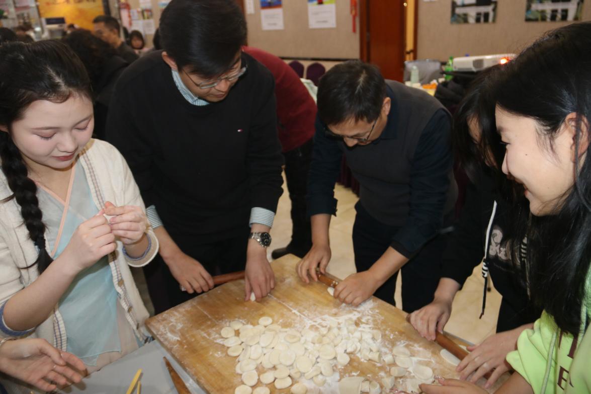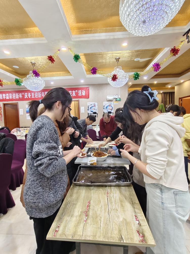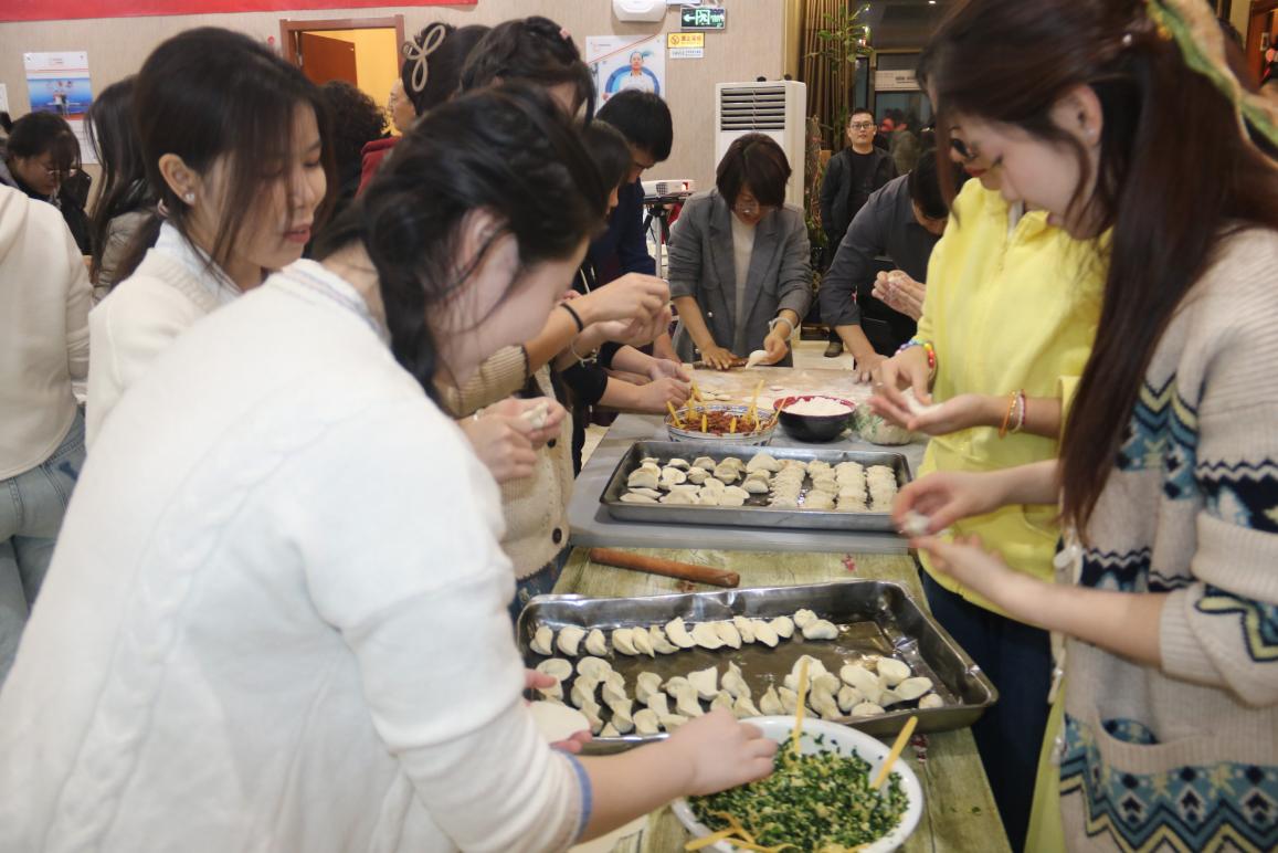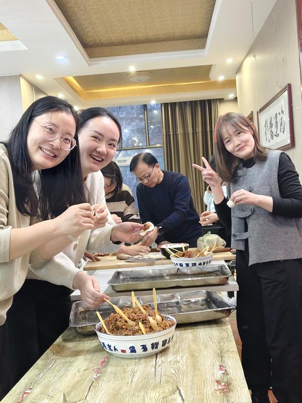 一句“冬至大如年,人间小团圆”,瞬间点出了活动的双重喜庆氛围。包饺子火热进行中,大家纷纷挽起袖子,分工协作,有人擀面皮,有人包馅料,技术娴熟的“老手”还会耐心教新手捏出漂亮褶子。师生、同事跨越年龄与身份差异,围在一起,面粉纷飞间,将对新年美好生活的期盼与希望承载到每一个饱满的饺子里,热气腾腾的氛围里满是融洽。
