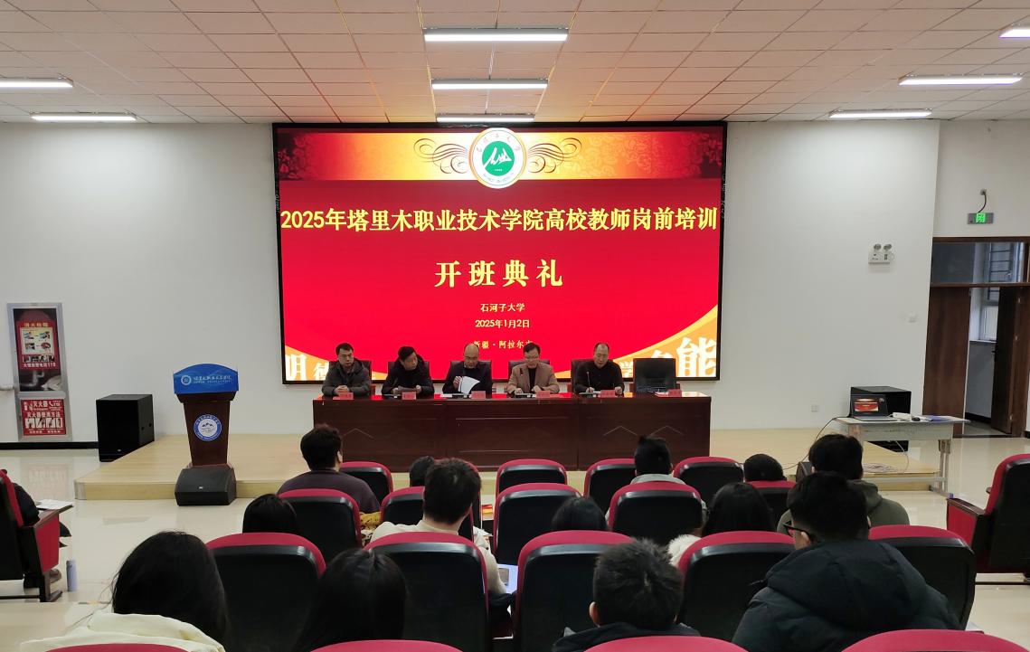 1月2日,2025年塔里木职业技术学院高校教师岗前培训班开班典礼举行,兵团教育学院院长童德军,塔里木职业技术学院党委书记王志朝、院长李裕仁,石河子大学送培专家和服务保障团队、塔里木职业技术学院相关职能部门及70名参训教师参加开班典礼,典礼由李裕仁院长主持。