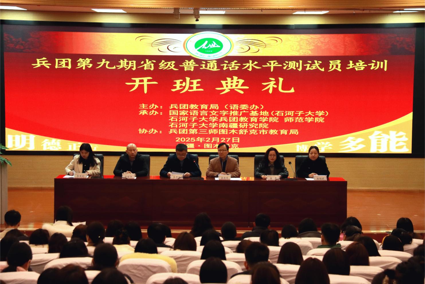 2月27日,由兵团教育局(语委办)主办,国家语言文字推广基地(石河子大学)、兵团教育学院和师范学院承办的兵团第九期省级普通话水平测试员培训在石河子大学南疆研究院开班,主办、承办方及第三师图木舒克市教育局有关人员参加开班典礼,基地办公室主任、教务处处长李思源主持典礼。