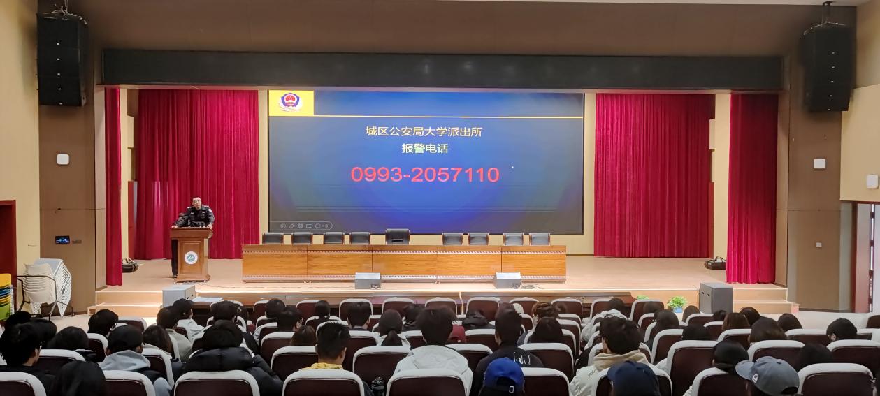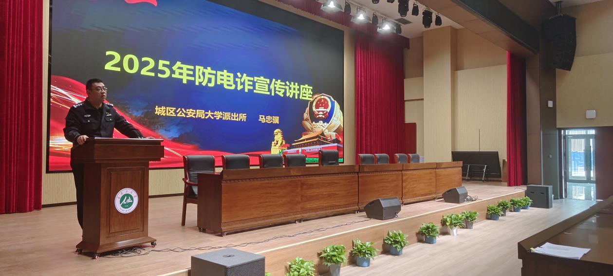 2025年10月16日至19日,城区公安局东明新村派出所马忠骥警官在将军山校区师范楼A119室为师范学院本、硕学生连续开展5场防电信诈骗宣传讲座,覆盖了师范学院所有班级,800余名学生参与。