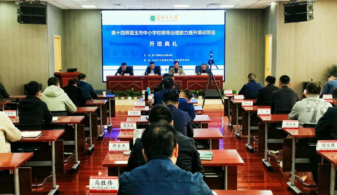 10月19日,由兵团教育学院、师范学院承训的第十四师昆玉市中小学校领导治理能力提升培训项目在石河子大学学术交流中心举行,兵团教育学院院长童德军、第十四师昆玉市教育局党组书记局长谢昆鹏、师范学院副院长吴东方、项目团队和48名参训学员参加典礼,开班典礼由吴东方主持。